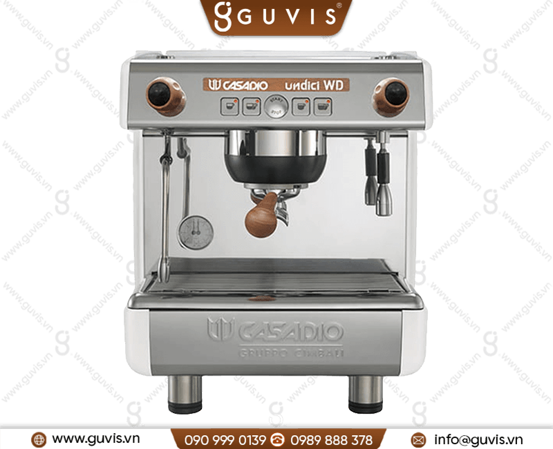Máy pha cà phê Casadio Undici WD A1 Group là một sản phẩm chuyên nghiệp xuất xứ từ Italia, dành riêng cho các quán cà phê với công suất vừa và trung bình. Dựa trên dòng máy Undici đã thành công, phiên bản Undici WD A1 thêm vào đó chi tiết vân gỗ sồi ở hai bên của máy, tay vặn vòi hơi và tay pha cà phê, tạo nên một sự kết hợp tinh tế và sang trọng.